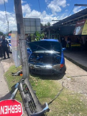 “追车期间,警员发出3次警示,要求司机停车,但司机不给予合作,警员于是寻求外援。追至Syed Jan Al-Jaffri学校前,该轿车失控撞灯柱停下,2名嫌犯下车逃跑,警员成功逮捕1人。”