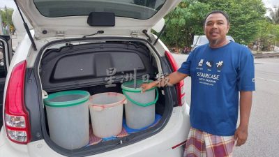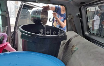 另一位居民沙林(47岁)在路口等水,他说缺水的情况已有2星期了,而这3天是完全断水,昨日他在工厂下班后,先在工厂冲凉再回家,但家里的太太与孩子无水可用。