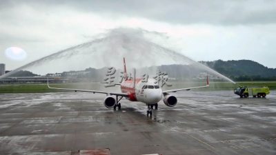 亚航深圳直飞槟城首航抵步 “水门礼”迎接100乘客