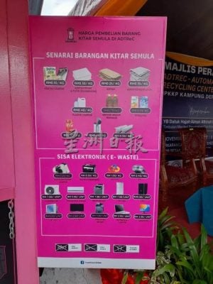 (亚罗士打1日讯)亚罗士打首个24小时得来速自动回收中心(ADTREC)正式启用,民众把可回收品送到回收中心,就可换取现金(Trash4cash计划),或仅用12令吉就可购买意外保险1年的保单(Trash4protection计划)。