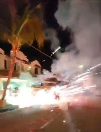 根据视频,一户印裔家庭在住家前放烟花,岂知烟花盒倒下,烟火直冲射入屋内,大家惊慌逃难,现场一片混乱。