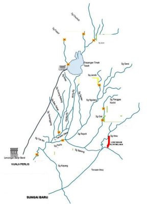 “阿罗马六甲绕道从新路引流至亚娄运河,将上游河流如亚娄河、朱宾、巴当西丁河(Sungai Padang Siding)等的支流分散,分别通至亚娄运河(Terusan Arau)直达新港,或者巴贡河(Sungai Bakong)再流入玻璃市河,直达玻璃市港口。”