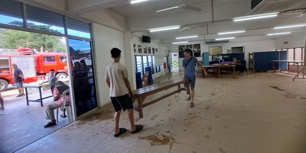 “这次水灾水淹坏了桌椅、5张乒乓桌、音响设备、水泵和电动门、食堂和礼堂的部分地砖出现翘角,损失估计逾4万令吉。”