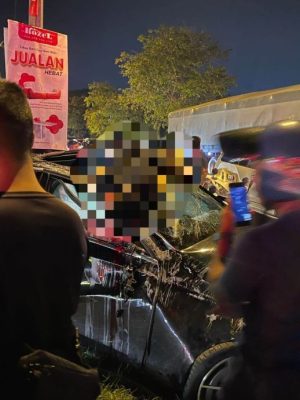 这起恐怖车祸是于今晚8时53分发生在西部绕道东姑古丁十字路口的路段,即在峇里峇里酒吧附近。