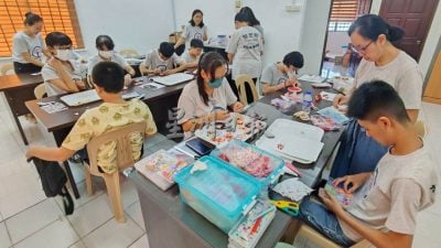 梦艺坊的美术导师黄小嘉(Avilina Ooi,43岁)依据每名孩子的程度和能力进行分配工作,让大家都可以参与其中。