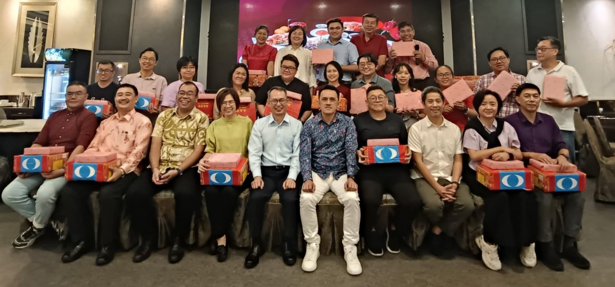 公正党领袖与各媒体代表“捞生”,希望新一年好运连连。(黄雨云摄)