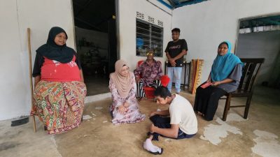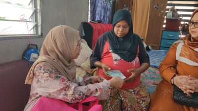 祖莱妮(左二)上门探望并捐赠现金及生活物资予诺尔茜亚一家。(取自祖莱妮脸书)