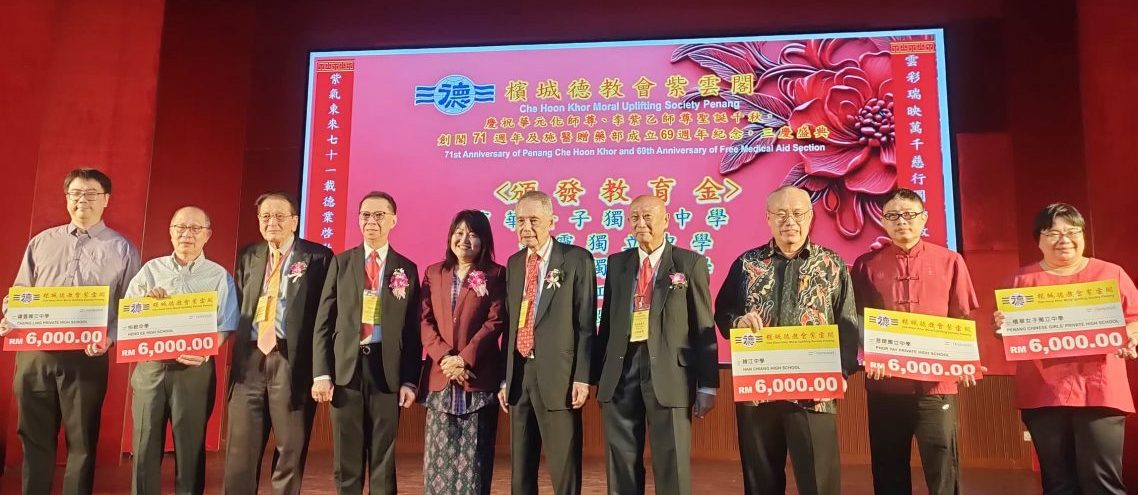 紫云阁也颁发3万令吉教育金给5所学校,包括槟华独中、锺灵独中、菩提独中、韩江中学、恒毅中学,每所学校获得6000令吉。