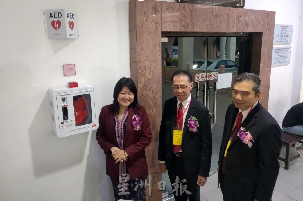 紫云阁阁长拿督沈雅财感谢林秀琴日前捐赠一台自动体外除颤器(AED),并安装在该阁。