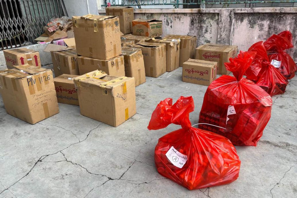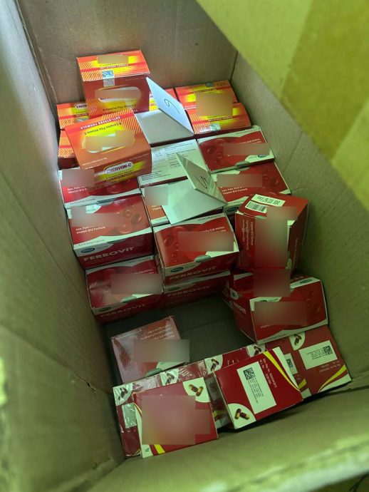 执法员扣留一名本地男子和一名缅甸籍男子,并充公总值近59万令吉没有卫生部准证,从缅甸入口的产品,包括868盒各种食品及1567盒药物和化妆品。