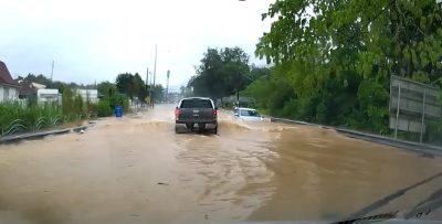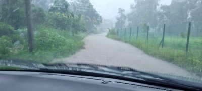 前方的道路已变成“河流”。(取自浮罗山背安全情报站脸书)