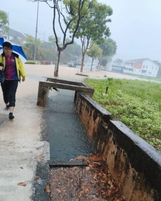 Botanica CT花园城镇周边的沟渠水流已满溢。(取自浮罗山背安全情报站脸书)