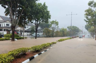 据了解,浮罗山背的双溪阿逸布爹路,尤其是Botanica CT花园城镇周边的道路,因沟渠水流满溢,雨水已覆盖道路,形成“河流”。