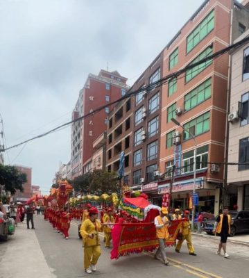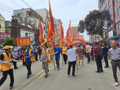 今年吉了寨(前称吉蓼铺)东吴港区办端午节龙舟竞渡,主题是“龙跃北岸福见端午”,吸引数以万计的民众沿街观赏游行队伍。五彩缤纷的旗队、双龙队、彩亭、神辇、十音八乐、马队、清洁工队、各机构各宫庙的队伍,在锣鼓喧闹炮声震天的声浪中,井然有序地浩浩荡荡阔步前进。