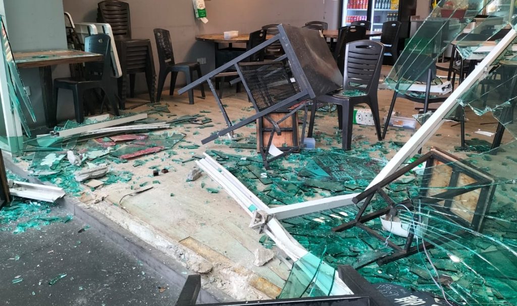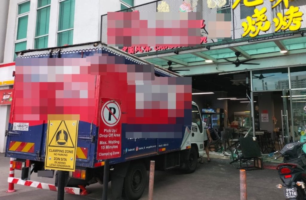 这起意外事件于今午5时许发生。现场可见满地玻璃碎片,罗里司机与烧烤店已在处理此事,而老板表示不接受访问。