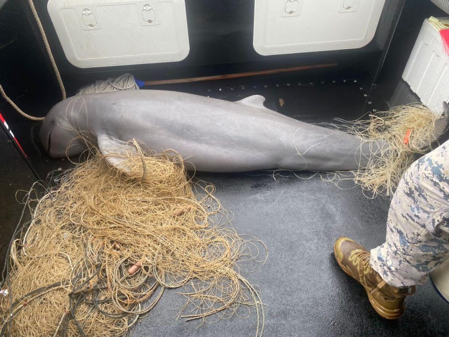 误入非法拖网工具 濒临绝种海豚被缠住死亡