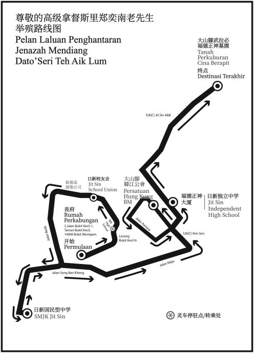 “拜祭者未必需要到丧府,他们可以在日新中学或日新独中等候,这两个地点的董事和师生都会安排告别仪式,日新中学的奕南园和日新独中都会逗留一段时间。”