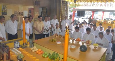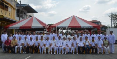 威南斗母宫全体理事在神明前宣誓。(谢梅虹摄)