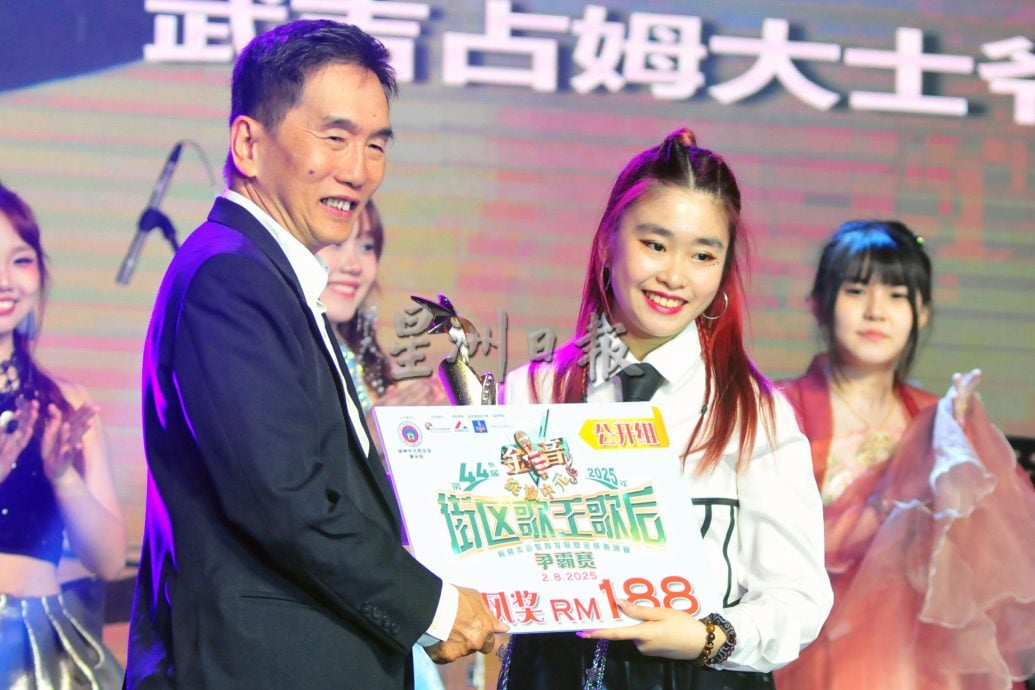 (大山脚2日讯)槟州中元联合会年度的街区歌王歌后争霸赛首次移师威省举办,连续21年参赛的陈永义终于在男子公开组摘冠后,进入“冠中冠”决战时再击退女子公开组冠军廖韵宣,一夜之间当上双料歌王,登上槟城州歷史最悠久歌唱赛的巅峰。
