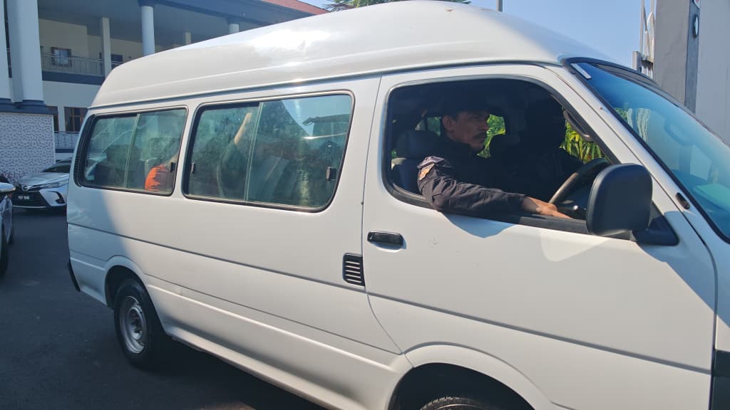 身穿橙色扣留犯衣的4人,坐在车队的第二辆客货车内,而车队的其中一辆警车内的警员更是全副武装。