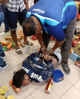 这事件今午在北海Jalan Telaga Air的一间超市内发生,相信由民众摄录的事发片段已上传社交媒体,引起热议。