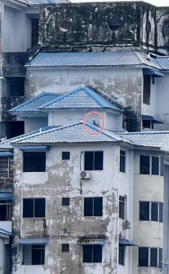 (槟城24日讯)受困在公寓17楼挑檐的灰狗,今日已进入第5天,仍无法获救。