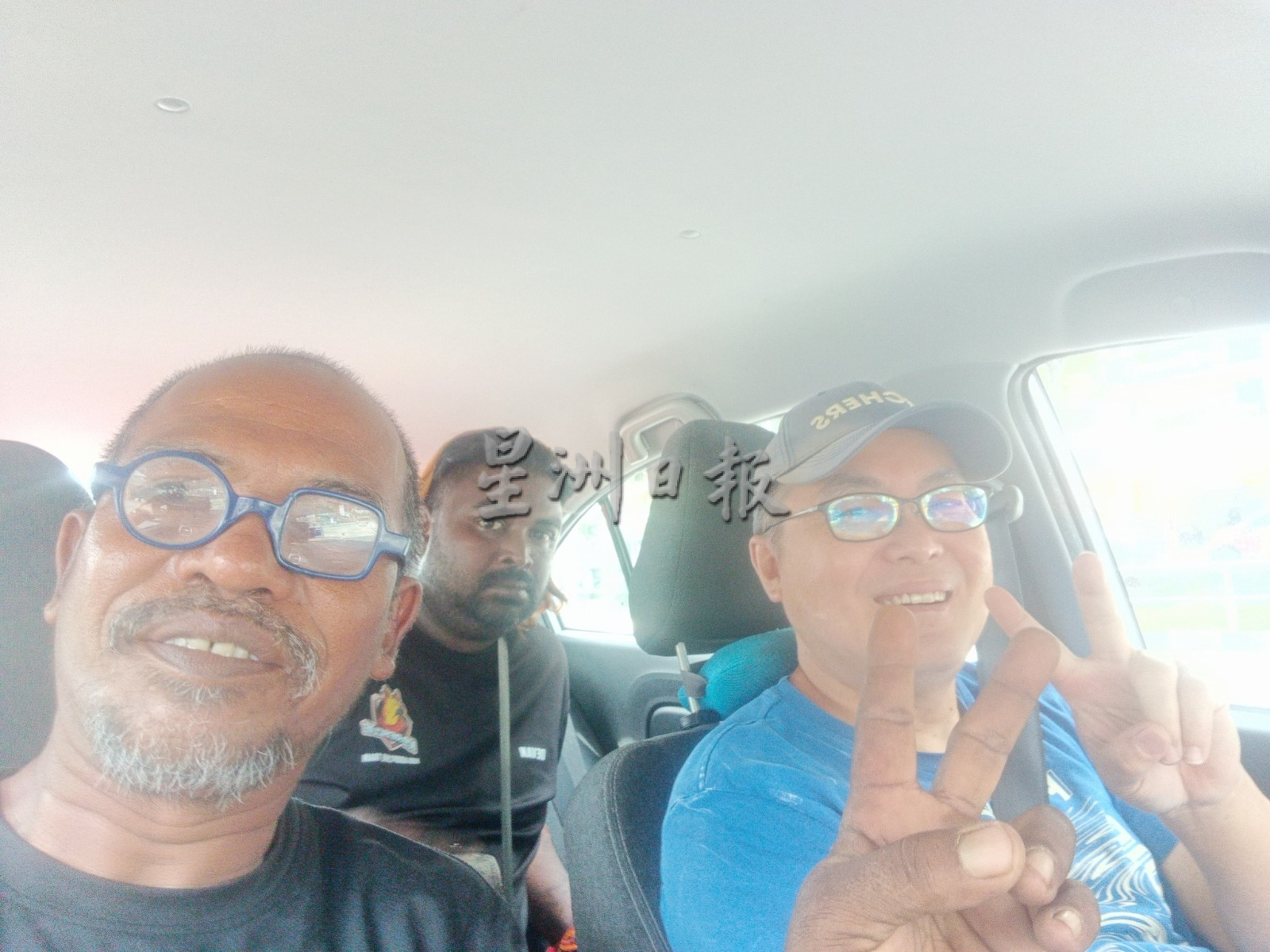 阿兹哈(左起)、德温和严文隆,一起前往湖内Villa Kejora第5座公寓,准备援救受困在17楼挑檐上的灰狗。(严文隆提供)