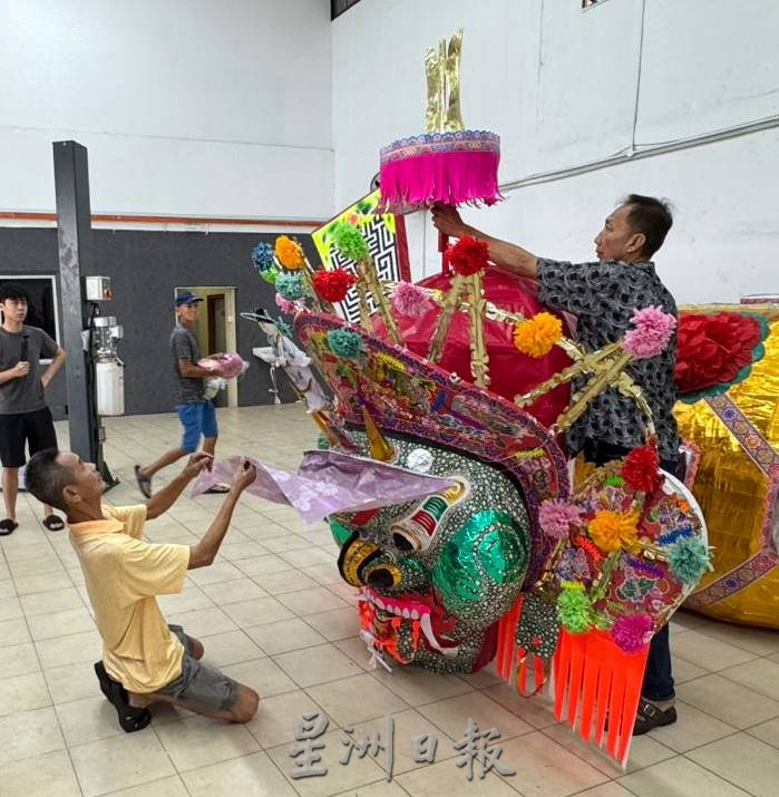 他说,这尊23呎高的大士爷金身由纸札师傅耗时一周精心打造后,分为头部、身体与手部、以及脚部3个部分运抵安装地点,并于今早完成组装及安座仪式。
