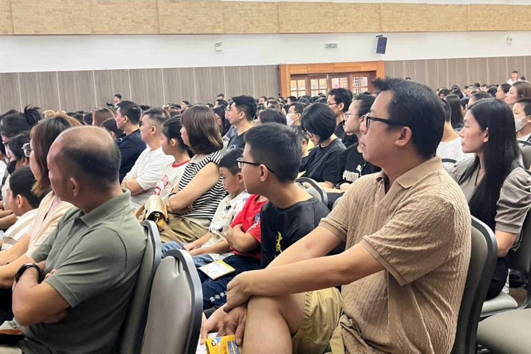 家长与孩子于开放日开始前,先在礼堂聆听校方的汇报。(图:日新独中)