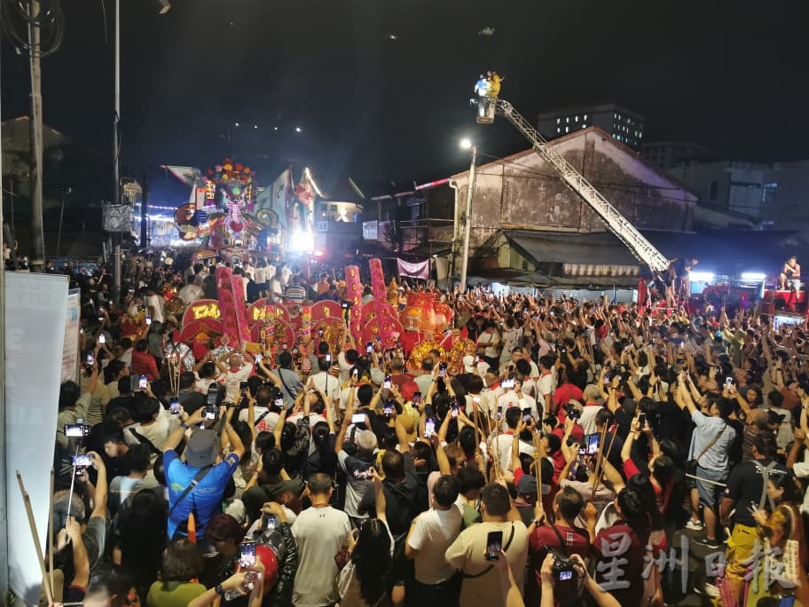 大士爷回銮之夜,大山脚旧街场人山人海。今晚约7时30分,大批善信和游客涌入盂兰广场及巴刹街,一起体验大山脚埠众盂兰胜会恭送大士爷的独特民俗。