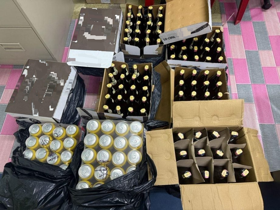 警方起获的啤酒和烈酒。(警方提供)