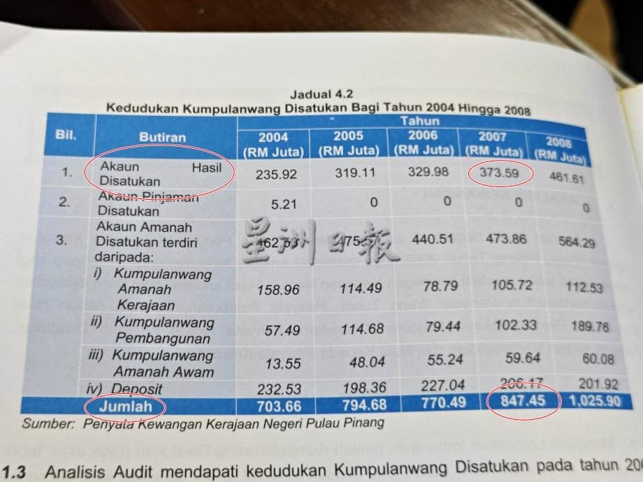 他强调,在2008年308大选进行槟州政权交替后,储备金肯定超过2007年底的8亿4745万令吉,但低于2008年底的10亿2590万令吉。