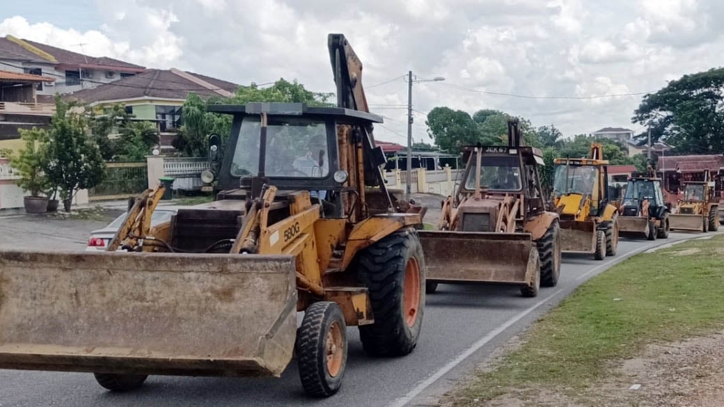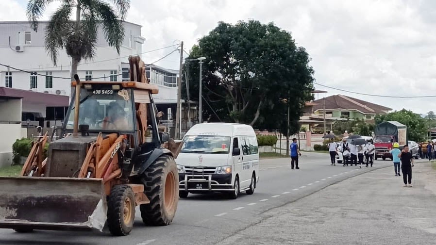 (双溪大年4日讯)北马泥机界一代巨人刘澄洲昨日举殡,家属特别安排6辆泥机送别。