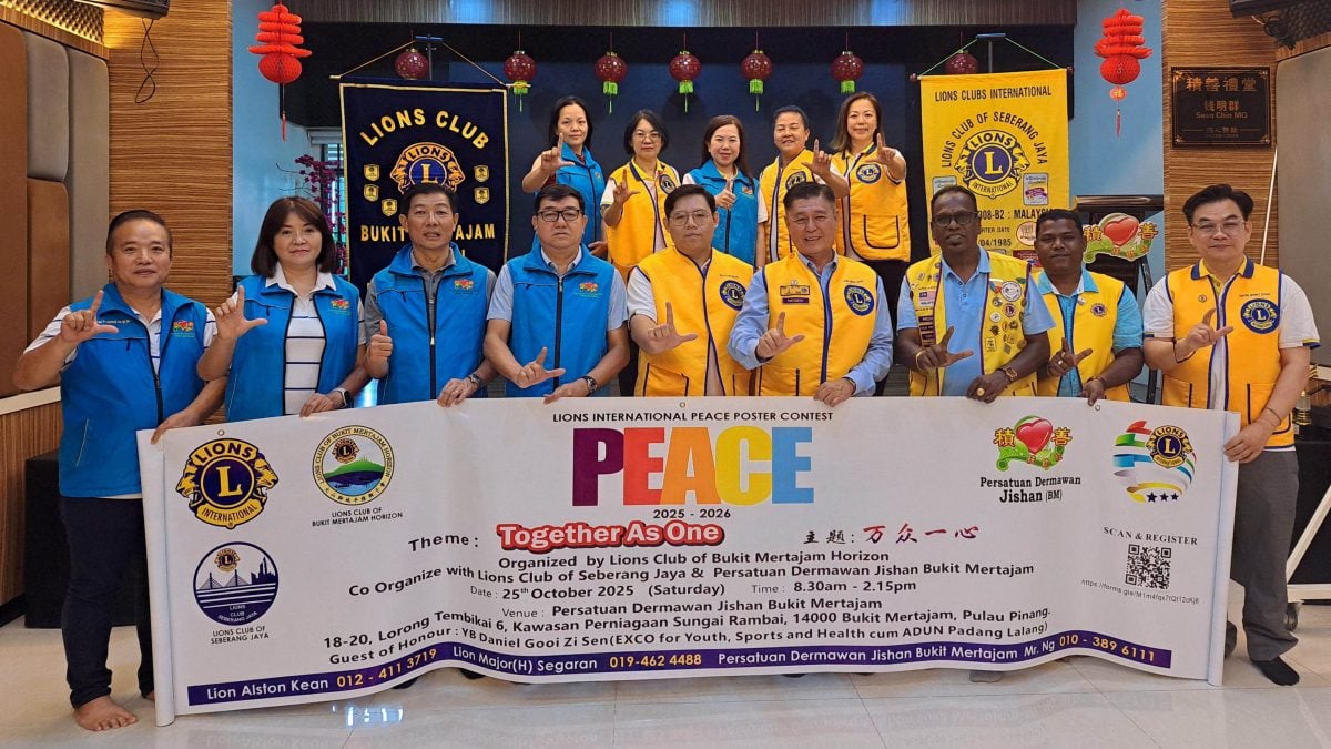 大山脚地平线狮子会会长拿督温志隆说,和平海报比赛是国际狮子会的青少年重点教育计划之一,今年的主题是“万众一心”(Together As One) ,寓意全球人民携手共创和平、团结与希望的世界。