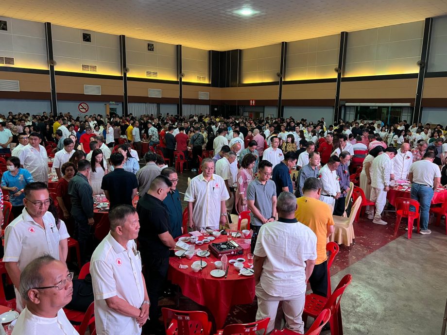 宴会昨晚在益民小学礼堂举行,筵开140桌。大会安排全体出席者起立,为已故理事即总务陈廷章、财政李金明默哀,以表追思。