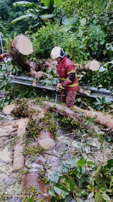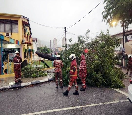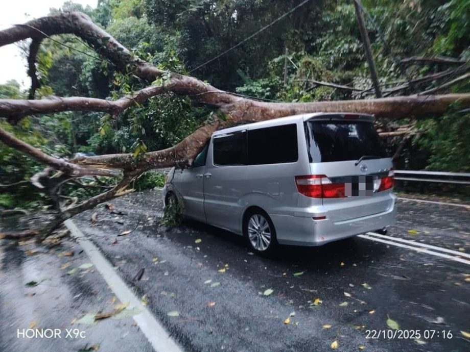 该局也发文告指出,该局今早共接到7个地点树木倒下的投报,当中还包括浮罗山背旧路、新港军营附近、斯里浮罗山背学校附近、立信花园、直落斗哇孟加里路发生的树倒事件。