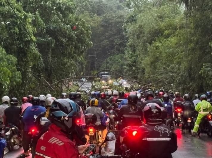 其中,浮罗山背新路倒下横跨马路,导致车辆无法通行,交通大阻塞。