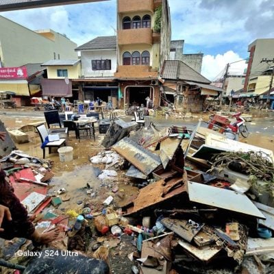 合艾大水逐渐退去,灾场一片狼藉。(取自社交媒体)