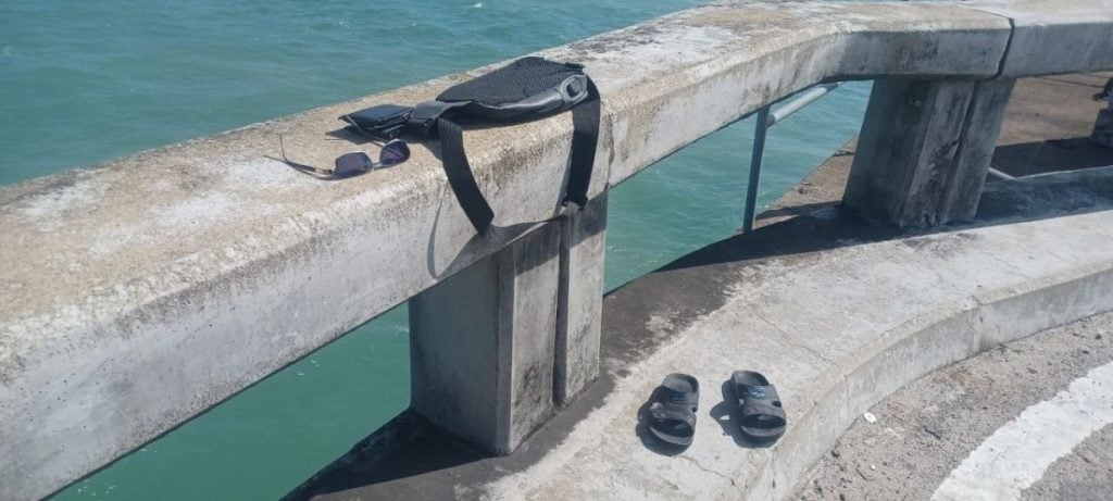 今早有人在槟城大桥往北海方向4公里处,发现他的斜挎包、钱包和拖鞋,但人已失去踪影。