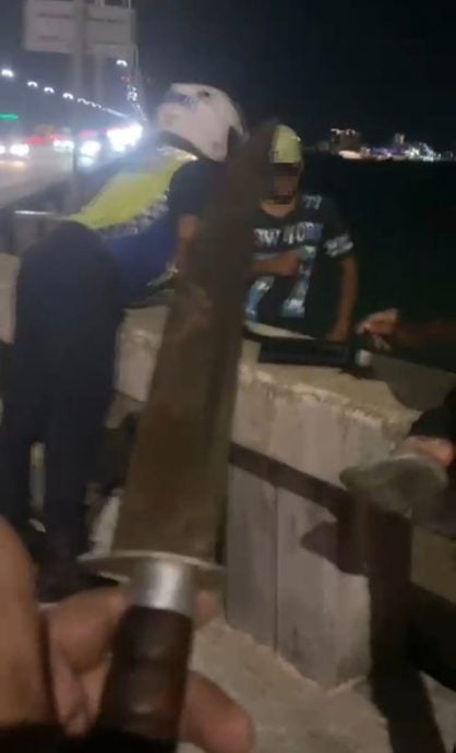 无独有偶,昨晚8时许在槟城大桥同样北海方向的4公里路段,一名相信是缅甸籍的男子站在桥边,疑似用刀子刺伤自己的胸口后跃下大桥,目前生死不明。