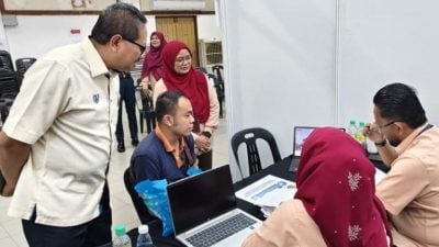 伊尔米昨午联合居林市议会秘书诺阿佳蒂巡视设在太子城礼堂的听证会会场。
