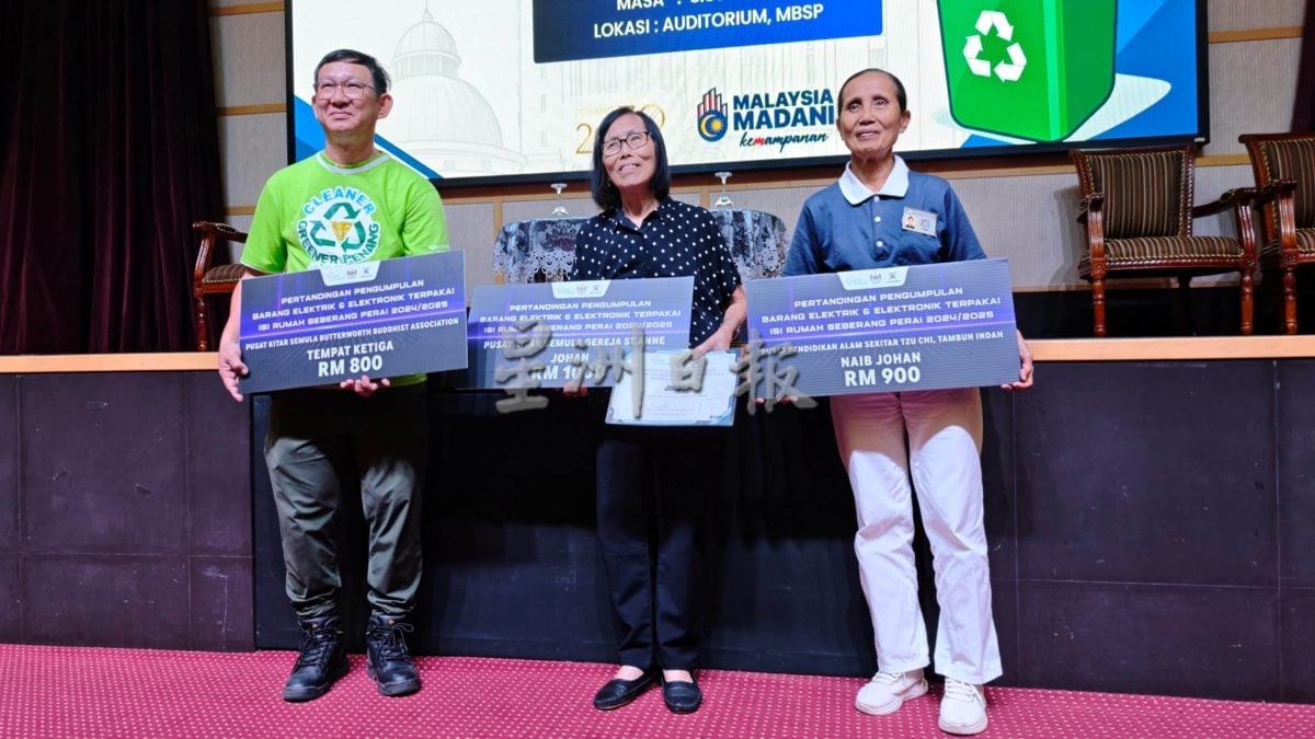 大山脚圣安纳乙级圣殿回收中心回收委员会秘书胡金娘、武吉淡汶慈济环保教育站负责人林丽萍、北海佛教会回收站陈义鸣等人,于颁奖礼上代表各自的单位领奖。