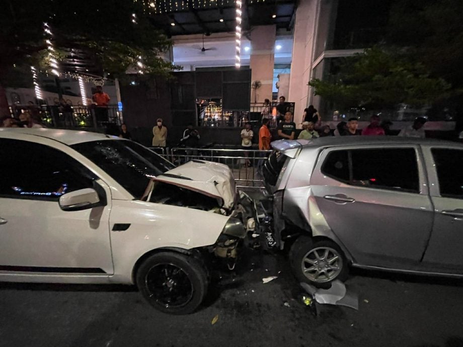 (槟城12日讯)印裔司机驾车经过市区,突然失控撞向路旁停着的汽车,酿4车连环撞,其中一辆车内有人,造成2人受伤。